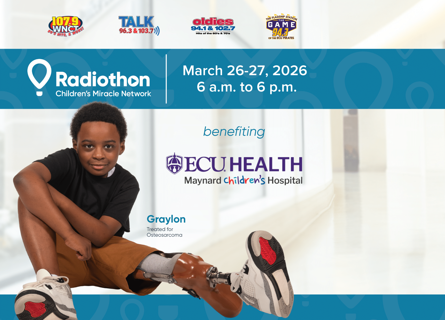 Tune in to the 29th Annual Music for Miracles Radiothon and make miracles happen! Join us March 26 and 27 from 6 a.m. to 6 p.m. on 107.9 WNCT and the other Inner Banks Media stations.